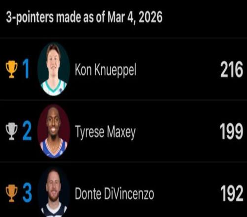 2.此役后本賽季也只有克努佩爾命中超過(guò)200個(gè)三分球;