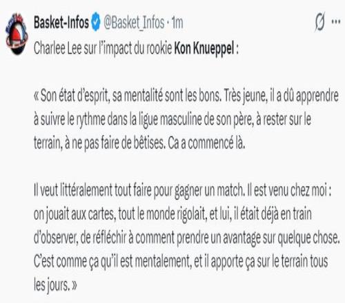 克努佩爾的隊(duì)友布蘭登-米勒談到弗拉格與克努佩爾的最佳新秀之爭(zhēng),他說(shuō)道:我從第一天開(kāi)始就說(shuō)克努佩爾就是最佳新秀,我不想再說(shuō)一遍。