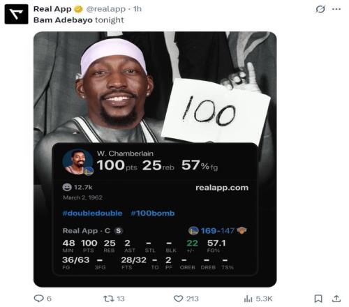 20.阿德巴約成為NBA歷史上單場(chǎng)得分第二高的中鋒;