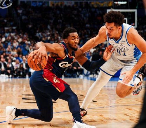 中段兩隊(duì)輪流罰球,但騎士外線命中率大幅下滑。直到后半段,哈登突破挑籃+埃利斯空位三分球才勉強(qiáng)回應(yīng)。班凱羅和杰旺卡特繼續(xù)罰球,米切爾和哈登單打追平比分,半場(chǎng)戰(zhàn)成62平。進(jìn)入第三節(jié),哈登撤步三分+加速過掉班凱羅上籃,此后哈登繼續(xù)喂餅?zāi)祭?,不過魔術(shù)依靠貝恩內(nèi)突外投,再度打停騎士,貝恩還做出了昔日隊(duì)友莫蘭特的“Bang”動(dòng)作。中段席爾瓦和班凱羅繼續(xù)上分,騎士也能咬住比分,但整體高度太矮了。節(jié)末托布連拿5分止血,但節(jié)末杰旺卡特和霍華德下三分雨,貝恩拉桿上籃,三節(jié)打完,騎士89-96落后。