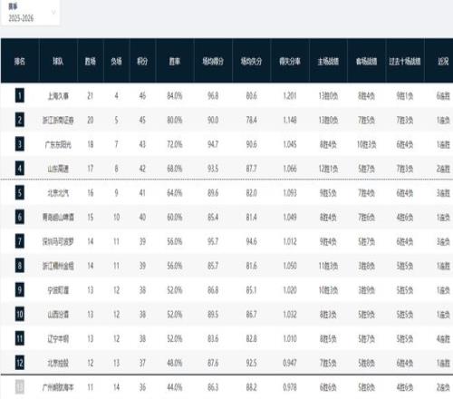 CBA排名大變天!上海6連勝穩(wěn)居第一,山東復(fù)仇青島,北京力爭(zhēng)前四
