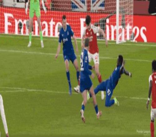 5分鐘后,賴斯插上和薩卡打出配合后突入禁區(qū),加納做出關(guān)鍵鏟球,將球攔下。