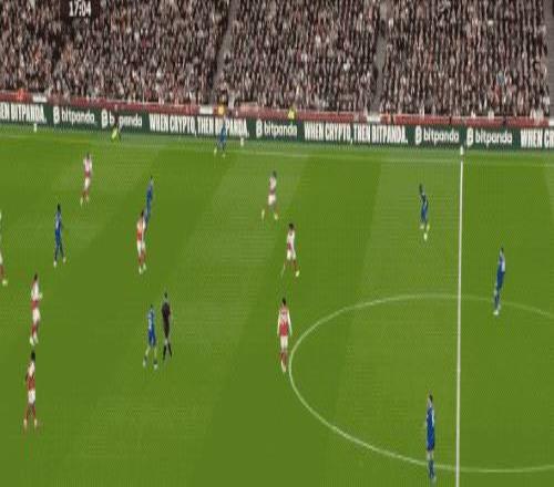 第44分鐘,賴斯開出角球,薩卡停球過大,之后的射門被封堵,馬杜埃凱的射門也被擋出,埃澤的射門放了高射炮,槍手球員的焦急體現(xiàn)的淋漓盡致。