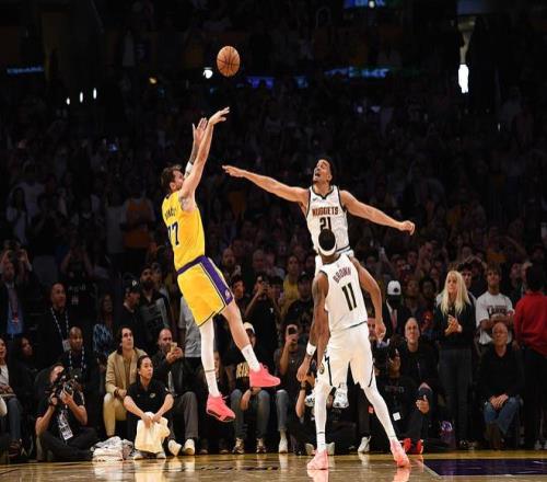 NBA常規(guī)賽繼續(xù)進行,洛杉磯湖人隊(42勝25負)繼續(xù)連勝。里夫斯常規(guī)時間結(jié)束前打3分追平拖入加時賽,東契奇加時賽還有0.5秒時投中制勝球,隨后他封蓋哈達威可能的絕殺球,湖人隊在主場以127-125險勝丹佛掘金隊(41勝27負)。湖人隊拿到5連勝,掘金隊結(jié)束2連勝。