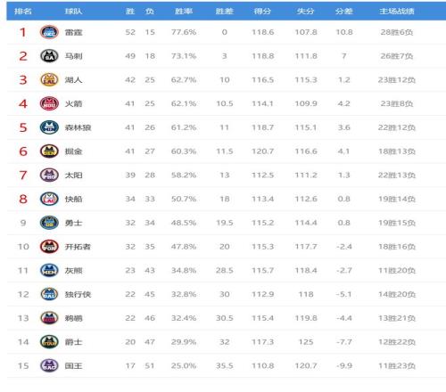 今日比賽后湖人、火箭排名互換,掘金、森林狼排名互換,其他西部球隊(duì)排名不變。