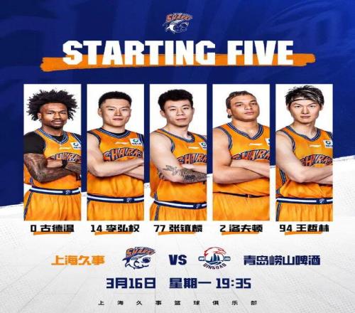 今晚,上海男籃坐鎮(zhèn)主場(chǎng)迎來(lái)CBA常規(guī)賽第26輪迎戰(zhàn)青島男籃的比賽。此役大鯊魚(yú)先發(fā)五人為:古德溫、李弘權(quán)、張鎮(zhèn)麟、洛夫頓和王哲林。