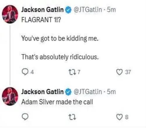 火箭隊記也在社媒為大哥鳴不平: “一級惡意犯規(guī)?你在開玩笑吧?這簡直太荒謬了?!?/p>