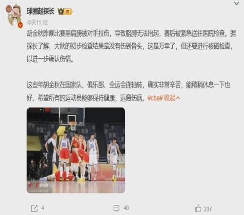 No!胡金秋最新傷情報(bào)告!這可是中國(guó)男籃第一核心