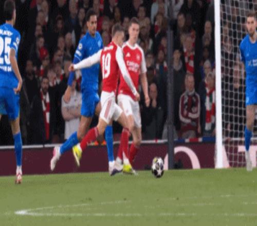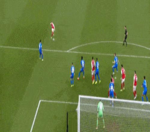 第36分鐘,阿森納中路連續(xù)頭球爭(zhēng)頂,特羅薩德向前做球,弧頂附近埃澤接球轉(zhuǎn)身直接爆射轟出超級(jí)世界波,阿森納1-0勒沃庫(kù)森。