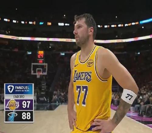 第三節(jié)東契奇迎“nan”而上徹底發(fā)威,單節(jié)投籃10中6(三分7中4)獨攬19分2板3助并且送出3次搶斷,成功帶領(lǐng)湖人反超熱火,以97-88進(jìn)入到末節(jié)。