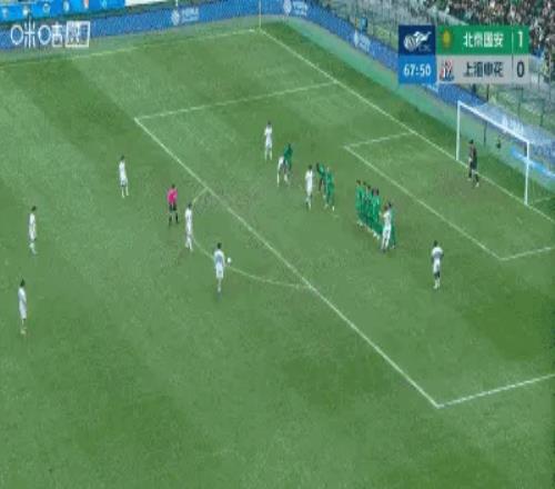 下半場,國安的阿不都海米提弧頂位置上搶踢倒米內(nèi)羅吃到黃牌,并送給申花一個位置絕佳的任意球。陳晉一任意球直接打進球門死角扳平比分。