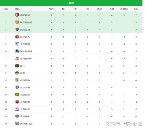 中超積分榜:西南三強(qiáng)占據(jù)前三,2隊實現(xiàn)積分轉(zhuǎn)正,1隊遭3連敗