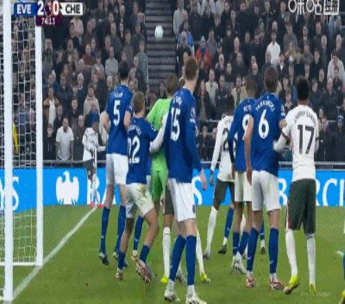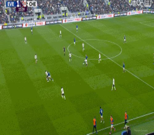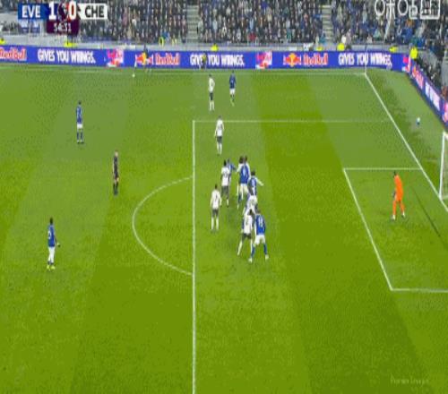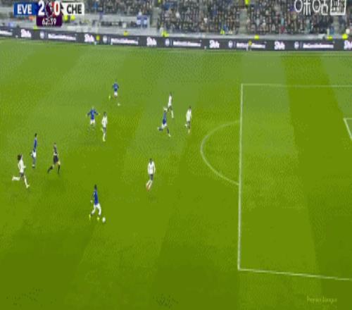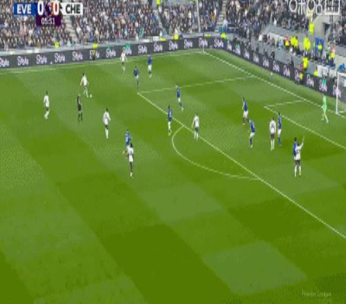 第34分鐘,加納直塞,貝托冷靜挑射破門,埃弗頓1-0切爾西