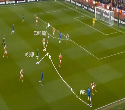 這次也是一樣的道理,切爾西的進攻從邊路發(fā)起,佩德羅回撤接應,結果蘇維門迪快速向后退,使得阿森納在禁區(qū)正面暴露出很大的空間。