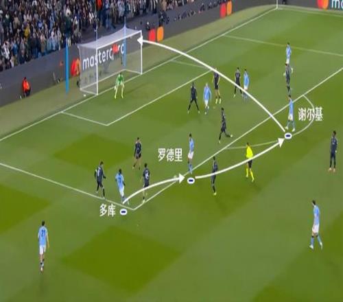 這一次是多庫傳給羅德里,羅德里再橫傳,帶來謝爾基的射門,可惜沒能打進。