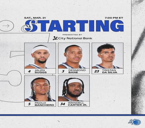 魔術(shù)38勝31負(fù)東部第六,落后第五猛龍1個勝場,領(lǐng)先第七老鷹0.5個勝場。從東部第九到東部第五,一共只差1.5個勝場。魔術(shù)首發(fā):薩格斯、貝恩、席爾瓦、班凱羅、小溫德爾-卡特。湖人首發(fā):東契奇、里夫斯、詹姆斯、斯瑪特、艾頓。