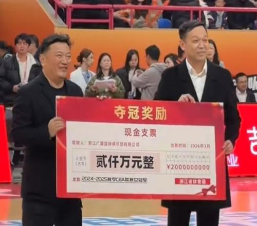 浙江有錢!體育局給廣廈頒發(fā)2000萬獎金,贊助也有,全力沖衛(wèi)冕吧