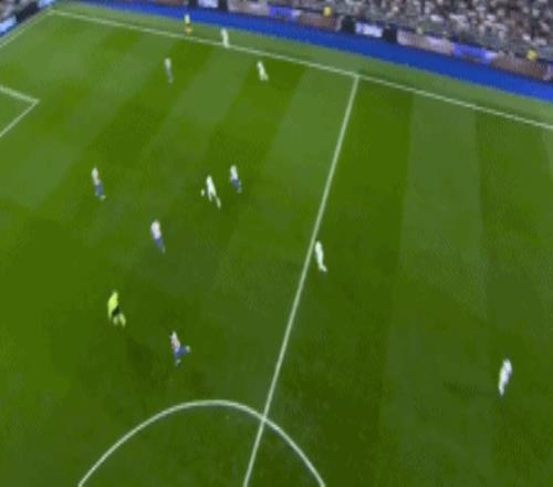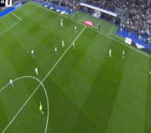 第42分鐘,卡瓦哈爾右路45°傳中,楚阿梅尼頭球攻門,擦著立柱偏出,皇馬又浪費(fèi)一次機(jī)會。