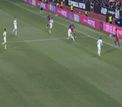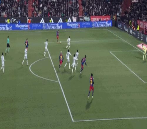 第39分鐘,德容前場(chǎng)斷球后助攻亞馬爾兜射破門,巴薩1-0!