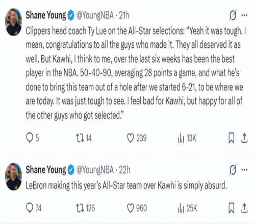 正因如此,他的落選才讓許多人感到不解,快船隨隊記者表達了遺憾,球隊主教練泰倫·盧也在采訪中為愛將發(fā)聲,認為其近期的卓越表現(xiàn)值得全明星的認可,這種“數(shù)據(jù)華麗卻遺憾落選”的反差,是本次事件成為焦點的核心。
