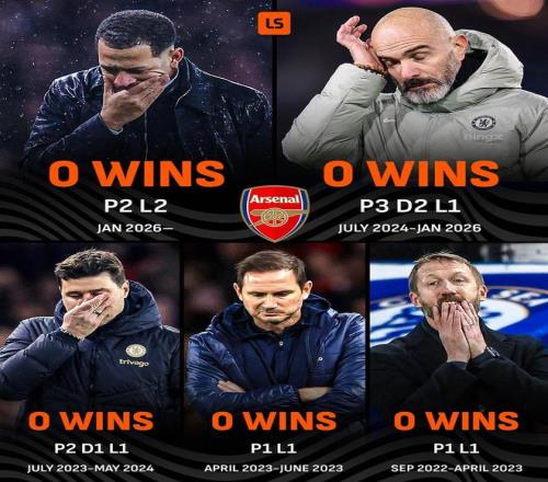 切爾西最近五位主帥對陣阿爾特塔戰(zhàn)績:
