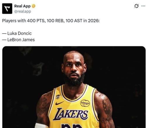 本場詹姆斯16中10又高效拿下25分3板7助3搶斷,正負(fù)值+24全場第二,這讓詹姆斯成為26年以來聯(lián)盟唯二拿到至少400分100板100助的球員之一,另外一人是東契奇。