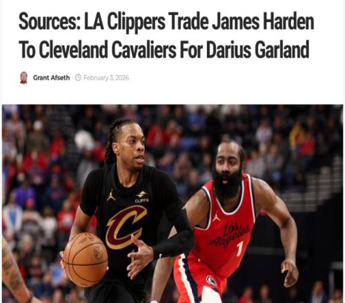 在傳出哈登向快船提出交易申請后不到24小時(shí),快船與騎士便迅速圍繞哈登與加蘭完成2換1交易,具體內(nèi)容為: