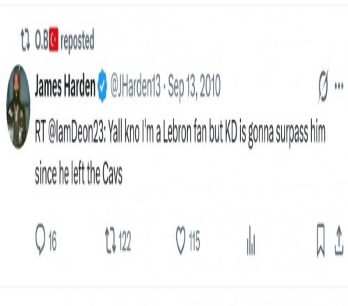 哈登2010年舊推:我是詹姆斯粉絲但他離開騎士了&杜蘭特將超過他