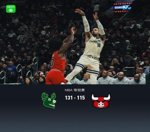 第四節(jié)雄鹿庫茲馬拿下6分,公牛帕特里克-威廉姆斯拿下9分,最終雄鹿131-115戰(zhàn)勝公牛