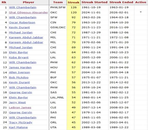 這樣,亞歷山大已經(jīng)拿到20分(22中8),連續(xù)121場拿到20+,距離歷史紀(jì)錄只差5場!