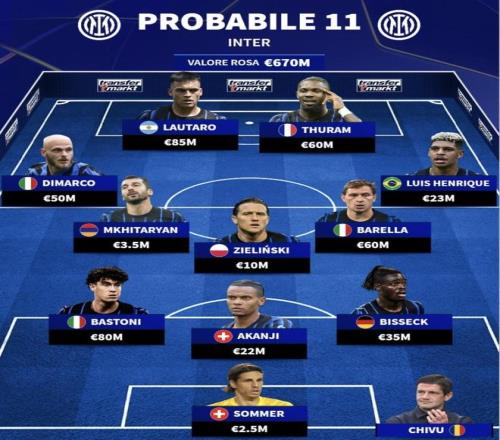 國(guó)際米蘭 | 預(yù)測(cè)首發(fā)11人(陣容身價(jià):6.7億歐元)