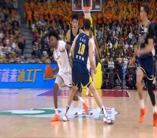 1分鐘后陳家政繼續(xù)緊逼貼身防守古德溫,古德溫憤怒地推開了陳家政的手臂,之后在擺脫過程中古德溫右手發(fā)力將陳家政推倒在地,裁判吹了古德溫犯規(guī)。