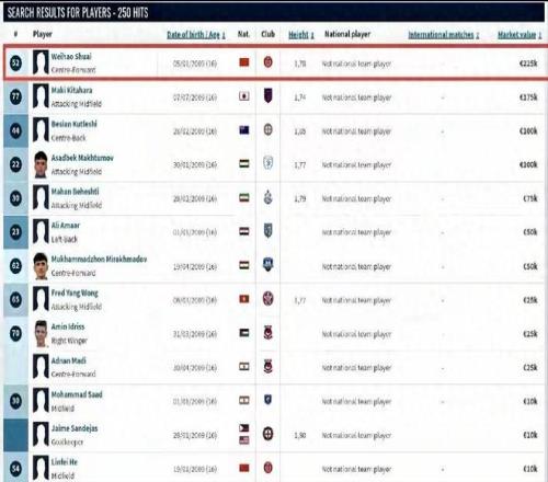 出乎意料!09小將帥維浩德轉(zhuǎn)身價(jià)22萬歐元,亞洲同齡段排名第一!