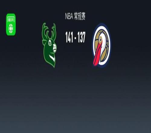 加時賽雄鹿邁爾斯-特納拿下3分,鵜鶘赫伯特-瓊斯拿下5分,最終雄鹿141-137戰(zhàn)勝鵜鶘