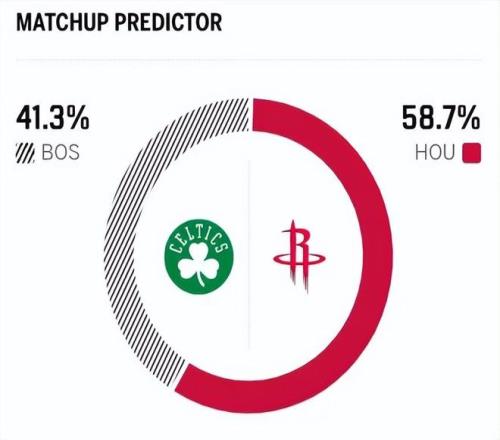 賽前,美媒ESPN對本場比賽進行了勝率預測,火箭隊勝率高達58.7% ,凱爾特人勝率則僅有41.3% ,差距還挺明顯。