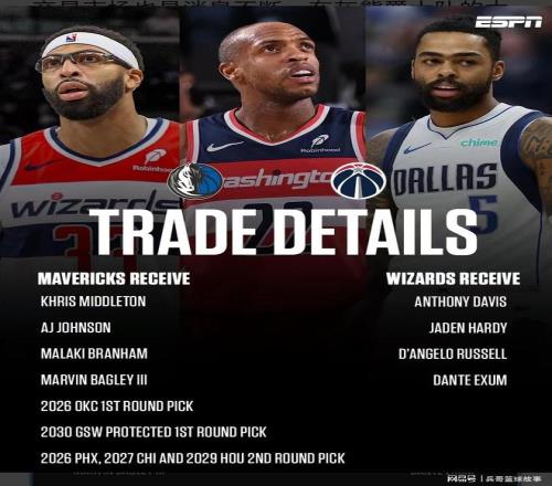 據(jù)SHAMS報道,獨行俠和奇才進(jìn)行大交易,獨行俠將濃眉、哈迪、拉塞爾和艾克薩姆交易到奇才,換來漢密爾頓、約翰遜、布蘭納姆。巴格利,2個首輪和3個次輪簽!