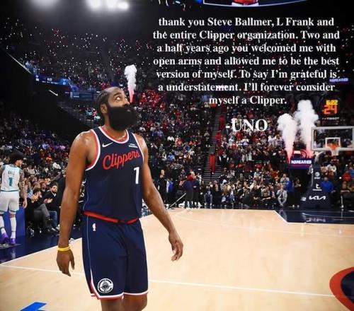快船與騎士的交易正式官宣,哈登接下來將要代表騎士出戰(zhàn),繼續(xù)向著總冠軍沖擊。很快哈登也是更新動態(tài):“感謝鮑爾默、弗蘭克以及整個快船。兩年半前,你們張開雙臂擁抱歡迎了我,讓我能夠成為最好的自己。說感激不盡太輕描淡寫了,我永遠(yuǎn)視自己為快船人?!边@一次雙方的分手并沒有不愉快,都滿足了各自所需,彼此之間也都有著不錯的關(guān)系。