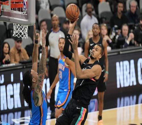 5日的這場比賽是雙方常規(guī)賽中的最后一次交手,由于亞歷山大在一天前同魔術(shù)比賽時腹部肌肉拉傷,因此至少要缺席兩周的時間。同時霍姆格倫也沒打,未戰(zhàn)先示弱。馬刺半場領(lǐng)先15分,早早掌握主動確立勝局。全場比賽馬刺全隊五人得分上雙,其中兩人打出兩雙數(shù)據(jù),分別是拿到了22分14籃板的文班亞馬,以及得到15分送出10次助攻的??怂埂?/p>