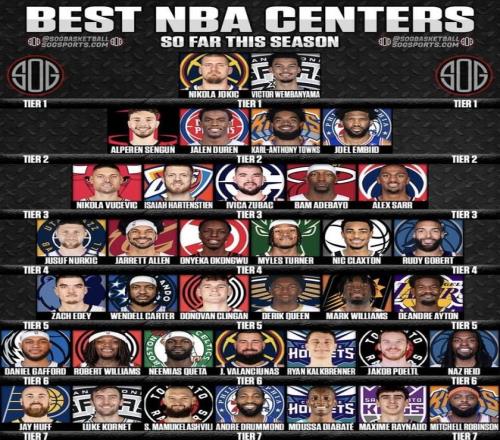 美媒發(fā)布NBA中鋒分檔圖!楊瀚森隊友克林根在第五檔申京第二檔