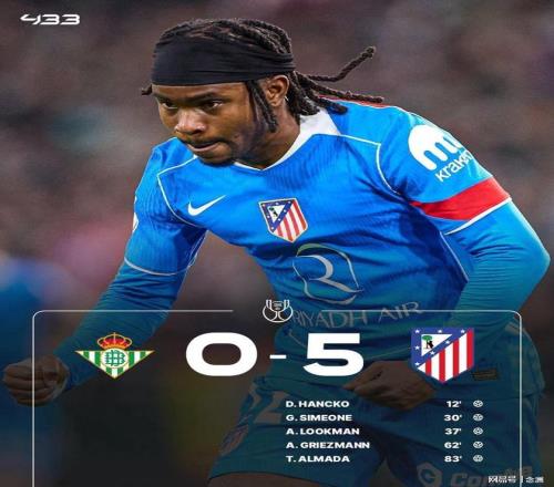 國王杯1/4決賽,馬競客場5-0大勝貝蒂斯晉級四強(qiáng)。上半場,漢茨科、小西蒙尼、盧克曼?連進(jìn)三球。易邊再戰(zhàn),盧克曼助攻格列茲曼再下一城,阿爾馬達(dá)錦上添花。