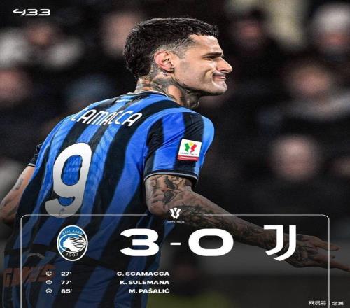 意大利杯1/4決賽,尤文圖斯0-3負(fù)于亞特蘭大,無緣四強(qiáng)。小孔塞桑抽射中楣,布雷默送點(diǎn),斯卡馬卡點(diǎn)射首開記錄,蘇萊馬納替補(bǔ)建功,帕薩利奇破門。