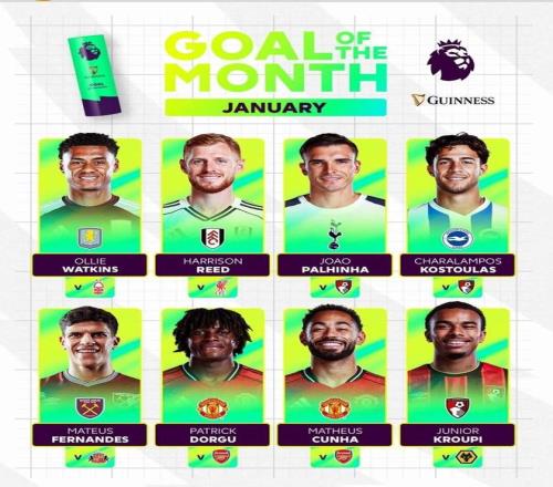多爾古和庫(kù)尼亞在對(duì)陣阿森納比賽中的進(jìn)球入圍英超1月最佳進(jìn)球候選;
