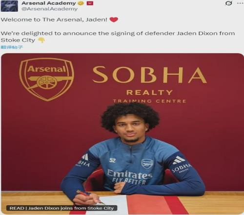 官方:阿森納宣布從斯托克城簽下了賈登-迪克遜。