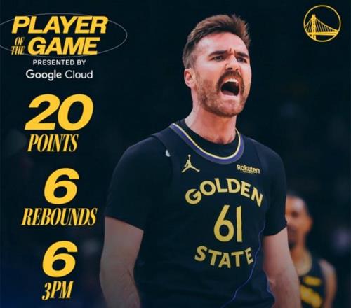 除了他之外,梅爾頓、桑托斯、小佩頓、霍福德也都得分上雙,并且至少命中2記三分,這讓勇士隊全場命中20記三分,最終拿下這場強強對話。