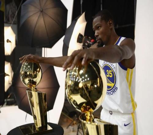 他加入后,勇士?jī)蛇B冠(2017、2018),杜蘭特連續(xù)兩年總決賽MVP。