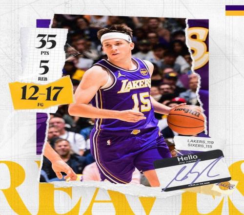 實(shí)際上,湖人現(xiàn)在真的值得期待,不僅僅是因?yàn)榭霞{德的加入,還在于里夫斯的歸來依舊是全明星水準(zhǔn),本場比賽,里夫斯出戰(zhàn)24分鐘,17投12中,其中三分球8投5中,得到35分6籃板2助攻。據(jù)統(tǒng)計(jì),這是里夫斯第二次砍下35+且真實(shí)命中率超過85%,隊(duì)史僅次于詹姆斯的4次,此外,本場里夫斯創(chuàng)下了湖人隊(duì)史上得分超過35分但出場時(shí)間最少的紀(jì)錄。