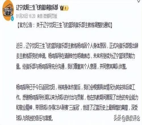 1月26日,遼寧男籃官方社媒發(fā)文,楊鳴正式卸任遼籃主帥的位置,對(duì)此,楊鳴表示:最近球隊(duì)的表現(xiàn)真心對(duì)不住球迷們的支持,讓大家很失望,我非常內(nèi)疚和慚愧。
