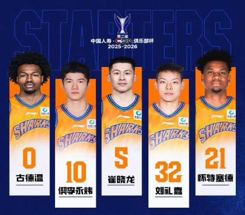 上海久事首發(fā)陣容:古德溫、偰李永煒、崔曉龍、劉禮嘉、懷特塞德。