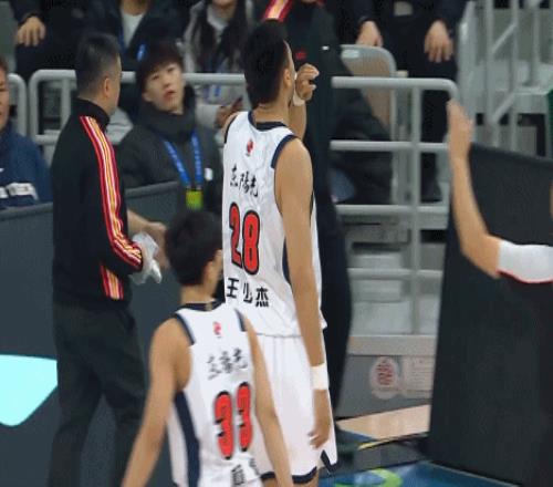 從慢鏡頭可以看到王少杰直接被迫下場止血,而王哲林也因此領到第二次犯規(guī)。