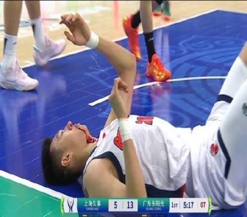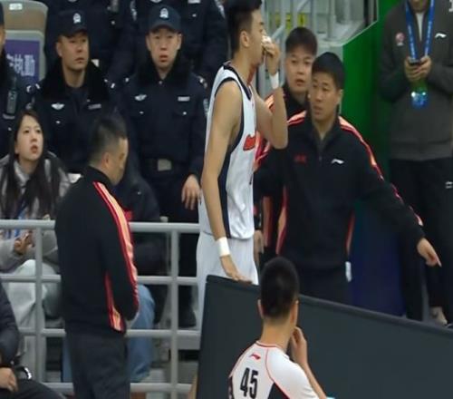 王少杰被打中面部,鼻子流血下場(chǎng)治療。